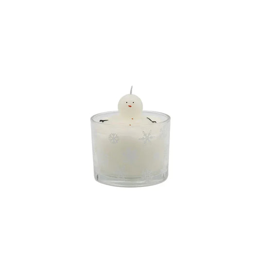 Melting Snowman Candle In Glass Vessel with Snowflakes, White