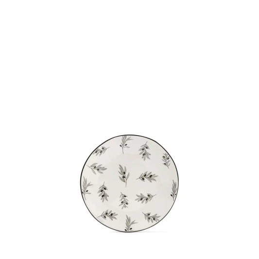 Regular price $20.00Regular priceUnit price perSale price $20.00This beautiful stoneware plate is certain to add a touch of rustic charm to any table setting and can be used for morning pastries, tasty sandwiches or even your homemade treats. Featuring Sophie's delicate illustrations of olive branches with healthy green leaves on a neutral background with coordinating dusty teal rim, this stoneware side plate will make an excellent gift idea for someone who loves Mediterranean style décor or any nature enthusiast.