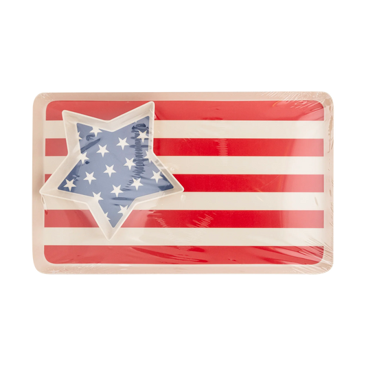Regular price $20.00Regular priceUnit price perSale price $20.00Show off your patriotism with our American Flag Stacked Reusable Bamboo Serving Tray Set. These star and striped bamboo trays offer a unique and eco-friendly way to serve your favorite foods. Perfect for 4th of July BBQs and year-round entertaining. • includes 2 bamboo trays • star tray is 8" • striped tray is 17.25" x 10.5" • Food safe • Dishwasher safe • Eco-friendly and sustainable • Do not microwave To see other pieces from our Stars and Stripes Collecton click HERE -