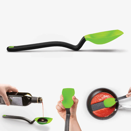 - Handy Spoonula: This kitchen tool combines the best qualities of spatulas and deep spoons. The offset head with shallow bowl scoops easily, and the silicone coating scrapes bowls and bakeware clean.