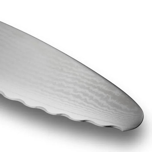 - This multi-purpose knife features serrations to cut through tougher foods without tearing
