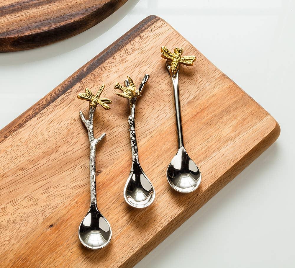 Stir up anything from coffee to dessert in extra-sweet style with this Bee Handle Small Spoon. Crafted out of stainless steel and brass, this elegant school is complemented by a detailed brass bee accent at the top of its handle.