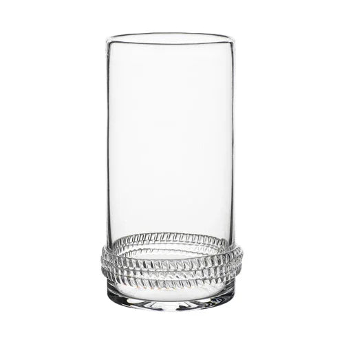 From our Dean Collection - From gin and tonics to fizzing seltzer, or iced tea, our mouth blown highball encircled in a glass rope base is the quintessential entertaining glass. Chic yet durable, our Dean Highball begs to be used everyday.