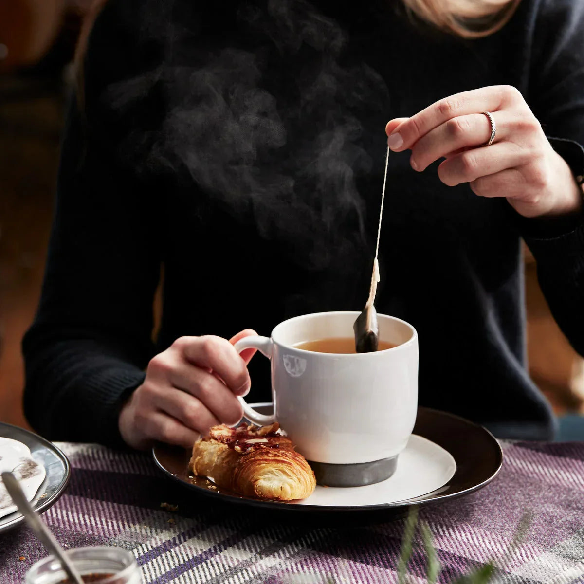 From our Emerson Collection-Rimmed in burnished Pewter Stoneware, our Emerson collection is elegant, rich and warm. This mug cup is a morning essential for your favorite cup of coffee or tea.