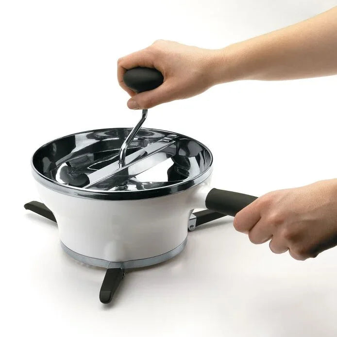 Whether you’re preparing hot or cold foods, the stainless steel inner bowl helps preserve temperature and won’t stain. Includes three grinding discs for fine, medium and coarse textures. Unique release button makes it easy to exchange discs and disassemble. Legs fold for easy storage.