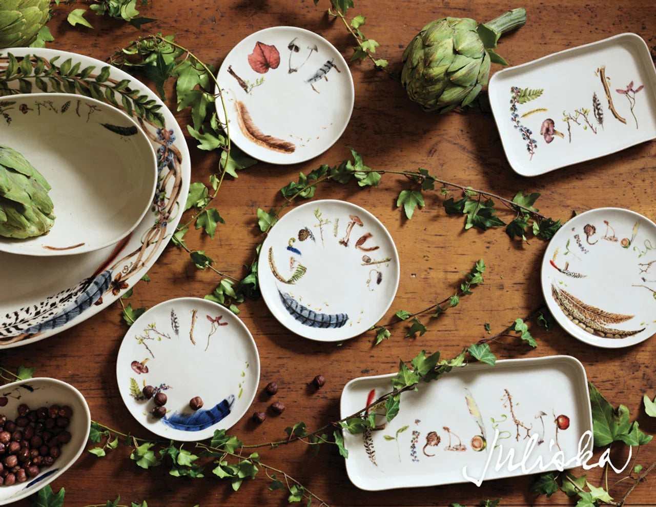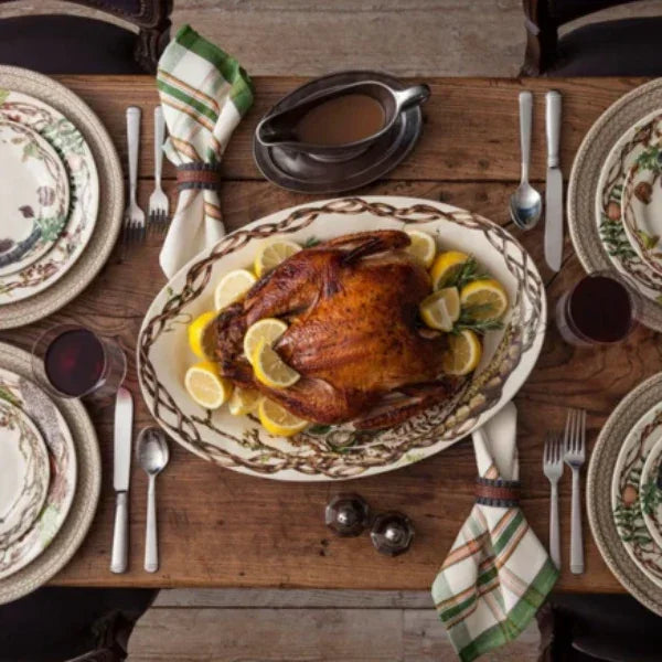 From our Forest Walk Collection-An ode to the earth's natural beauty, our Forest Walk collection features Mother Nature's abundant gifts illustrated in vibrant colors. This platter, rimmed with sculptural sticks and windswept feathers, will look lovely on a harvest kitchen buffet.