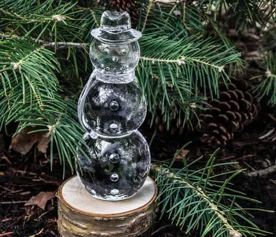Create your own winter wonderland, no mittens necessary. This jolly happy soul is handcrafted in brilliant clear glass to add whimsy to any holiday display – particularly among a cluster of Vermont Evergreens.