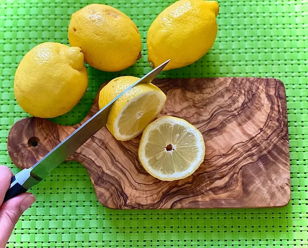 The Paddle Board is suitable for cutting bread, slicing cheese, chopping vegetables and carving meat. Olive wood is a hard wood making it very dense and durable for everyday use. Olive wood is nonporous so no germs or odors are retained. All products are made from a single piece of wood- they are seamless and no two pieces are alike.