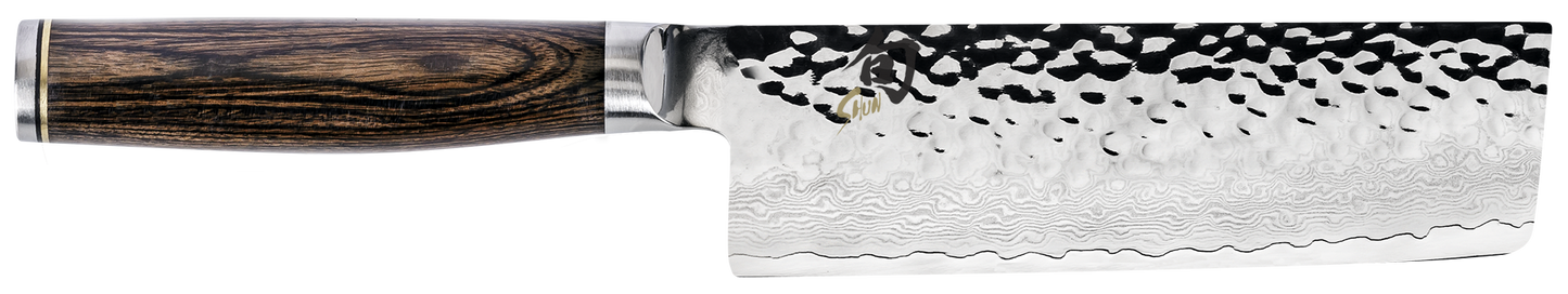 A Nakiri is a Japanese-style vegetable knife. If you haven't used Japanese-style knives before, the nakiri is sure to attract your attention due to its interesting shape. Yet this blade shape is quite practical, too. With its blunt tip, the Shun Premier Nakiri is safer to use in the kitchen, but without sacrificing any of the slicing and dicing power you need when processing vegetables and other foods. Because of its straight blade, edge, and spine, the nakiri isn't rocked like a chef's knife. Instead, use a push cut by moving the knife down and forward while keeping the edge parallel to the cutting surface. If you cut vegetables for salad or stir-fry, you will simply love using the Shun Premier Nakiri.