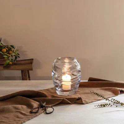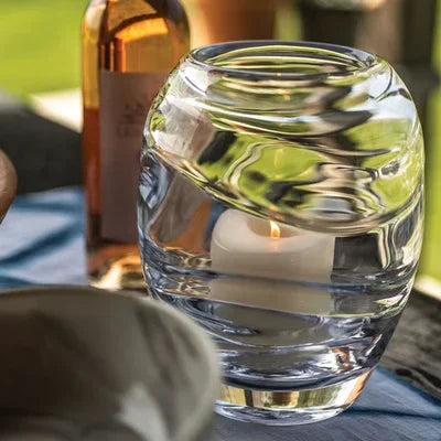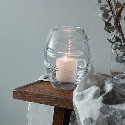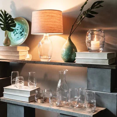 A layered effect that occurs during the glassblowing process, Waterbury’s double-gathered design captures the feeling of movement – not unlike the rushing rivers of the town’s Glen Falls. These optical overlaps brilliantly catch and refract light when illuminated from within.