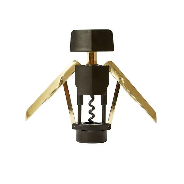 This sleek winged corkscrew offers exceptional function with extra leverage and aligns the bottle for easy opening. To use, remove the foil on the bottle and place the opener on top the bottle. Simply twist the handle at the top to raise the wings, then press the wings down to remove the cork.