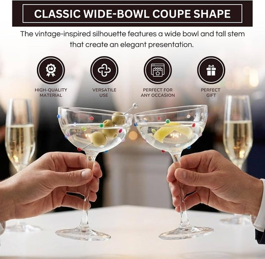 Vintage Confetti Coupe Glasses - Handcrafted Set of 2, 7.44 oz