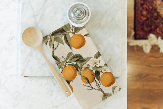 Regular price $16.95Regular priceUnit price perSale price $16.95Add warmth and personality to your kitchen with the charming Vintage Oranges Tea Towel. This beautifully designed piece brings a touch of vintage-inspired elegance to your culinary space while delivering exceptional functionality for everyday use.