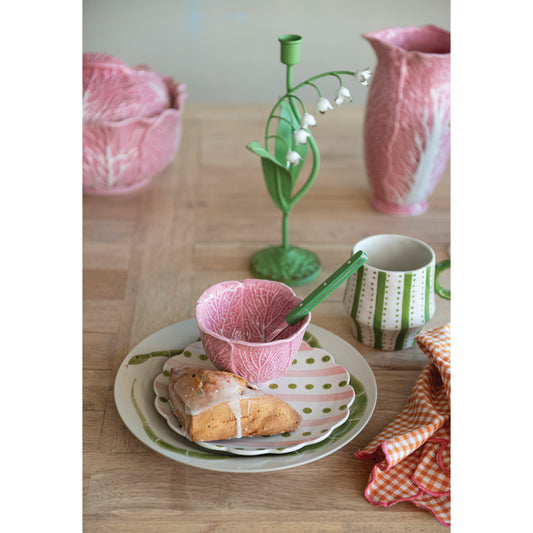Imagine this delicate lily of the valley holder gracing your dining table, its vintage charm transporting you to an English cottage garden. The hand-painted toleware technique gives it an authentic antique feel, while the fresh green and white palette keeps it light and cheerful. Whether you're hosting an intimate dinner or simply adding a touch of romance to your everyday decor, this piece brings timeless elegance.