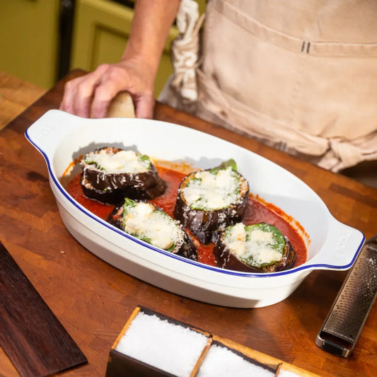 The Oval Baking Dish is perfect for both savory and sweet dishes like gratins or cobblers. Discover how Porcelain can make your most cherished recipes even better.