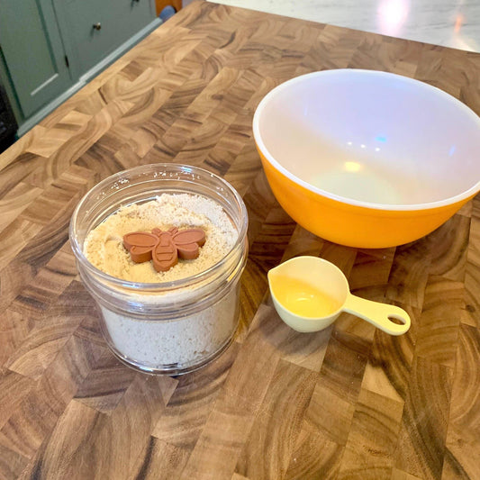 For starters, we developed the perfect lid that allows in the precise amount of air required for your starter to thrive. There’s also an o-ring to mark your progress and a spatula for mixing and removal. Then it wouldn't be complete without our own hearty strain of Dry Sourdough Starter with instructions on how to prepare it for baking.
