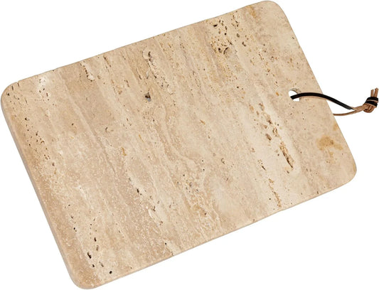 Regular price $34.95Regular priceUnit price perSale price $34.95Generous-size travertine marble with sturdy leather cord provides ample space for slicing and serving