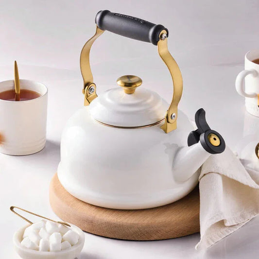 Regular price $125.00Regular priceUnit price perSale price $125.00The Le Creuset enamel on steel Classic Whistling Kettle is crafted from fast-heating premium carbon steel and finished with a colorful enamel in our stylish palette of colors to complement any kitchen. Useful for preparing French press coffee, oatmeal and much more in addition to tea, durable carbon steel heats water rapidly, and a fixed single-tone whistle alerts when the water has reached a rolling boil. Chip-resistant, non-reactive, resistant to stains, and easy to clean, Le Creuset kettles make excellent gifts and are a beautiful way to add a touch of color to the kitchen.