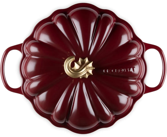 Inspired by a timeless fairy tale design and the brilliant colors of autumn, the Signature Pumpkin Braiser is a delightful seasonal addition to your kitchen and table. With its shallow, ribbed design and hand sculpted stainless steel figural knob, the wide base allows ingredients to be placed in a single layer for searing without crowding; once liquid is added, the domed lid circulates steam to lock in moisture and flavor. Crafted from our legendary enameled cast iron, it has exceptional heat distribution and retention qualities for even heating without hot spots, and locks in moisture and flavor to produce superior results from stove to oven to table. Designed for generations of durability, the easy-to-clean vibrant porcelain enamel requires no seasoning and minimizes sticking.Features