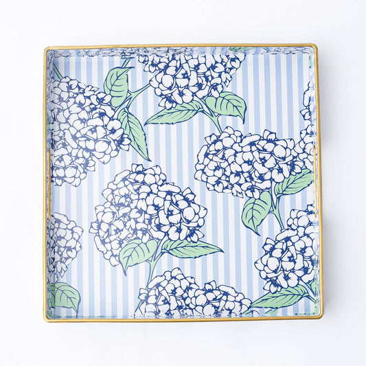 Featuring soft blue stripes that create a serene backdrop, adorned with subtle hydrangea floral details that add a hint of natural beauty. This design brings a fresh and elegant touch to your table or display, making it perfect for spring gatherings, afternoon tea, or everyday decorative use.