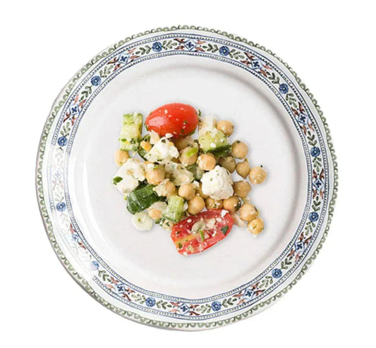 Regular price $40.00Regular priceUnit price perSale price $40.00Classically pretty, the intricately painted rim of this plate is designed for layering or to stand alone, with its versatile palette of verdant greens and balmy blues upon a bright white background.