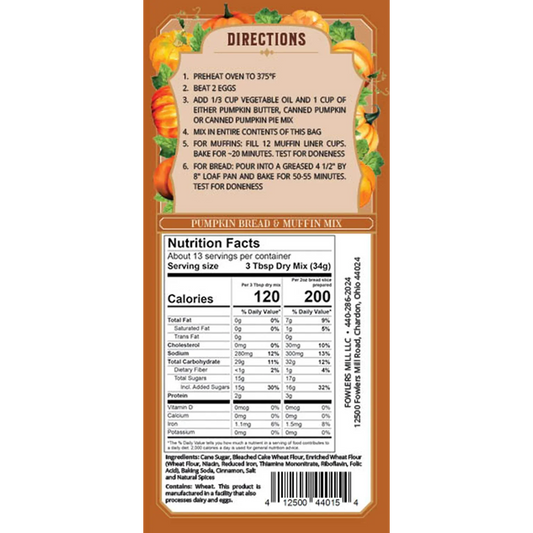 Regular price $8.95Regular priceUnit price perSale price $8.95This classic Pumpkin Bread and Muffin Mix is the perfect treat! Simply add eggs, vegetable oil and pumpkin, and fill your kitchen with the cozy smell of cinnamon-spiced pumpkin goodness. STORE OWNERS PLEASE NOTE that your customers must add pumpkin to this product! This product was originally designed to be sold at pumpkin patches, so the idea was that customers would be separately procuring their own pumpkin. We have debated including this and our other pumpkin product in our Faire offering since a pumpkin product in more general stores customarily has pumpkin in it. -