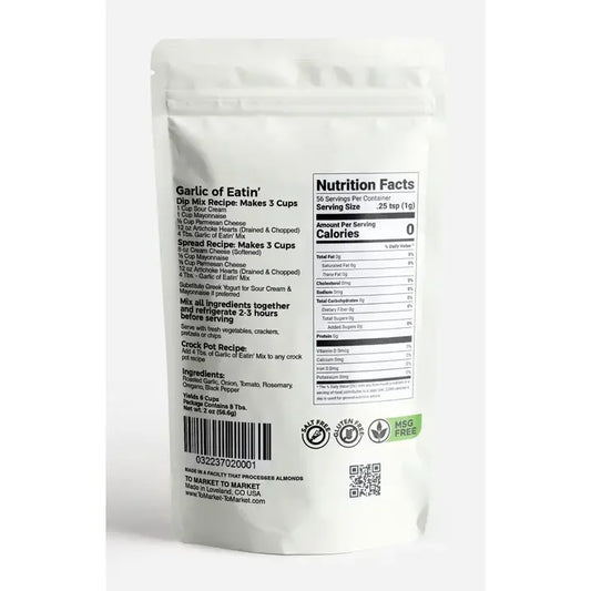 This one disappears quickly! One of our most popular 'packed full of flavor' dips mixes! Each Case contains (12) 2oz Re-sealable pouches of Garlic of Eatin' and 2 display trays that hold 6 packages each.