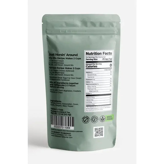 Regular price $6.95Regular priceUnit price perSale price $6.95INGREDIENTS: Tomato, Chives, Onion, Garlic, Black Pepper, Oregano and Horseradish No MSG, No Chemicals, No Preservatives, No Salt, Gluten-Free EACH PACKAGE: Yields 4 Cups of Dip