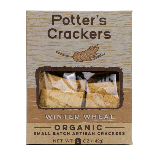 Regular price $7.49Regular priceUnit price perSale price $7.49Potter's Crackers are organic crackers designed with the the best cheese and charcuterie in mind. For this cracker, we double the amount of cracked Wheat in our organic Winter Wheat crackers to deliver a nutritious organic cracker. This vegan friendly option uses organic canola oil and water in place of dairy to create an airy texture in every bite. The classic flavor profile that we created is versatile enough to complement any cheese and is great topped with fruit and honey. It is one of our best selling crackers that is great with hummus, cheese and charcuterie, or straight from the box as a healthy snack. If you are looking for a cracker that delivers whole grain goodness and flavor in every bite, look no further! Our organic Winter What crackers are sure to do the trick. -