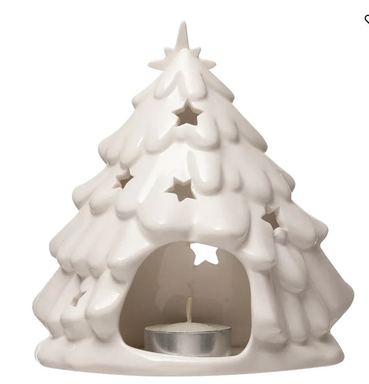 Regular price $16.95Regular priceUnit price perSale price $16.95This candle holder is perfect for any festive home. Made out of stoneware, this piece is made out of stoneware in the shape of a tree, and features the holy family. With a neutral white color, this piece both blends in with any other decor styles, and stands out with its unique shape