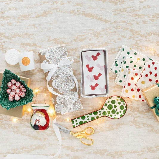 Regular price $5.95Regular priceUnit price perSale price $5.95A Christmas Classic! Allow our Gold Peppermint Stripe Cocktail Napkins to accompany any of our holiday stories or shine solo on your table as the perfect pop of candy coated elegance for the sweetest season of all!