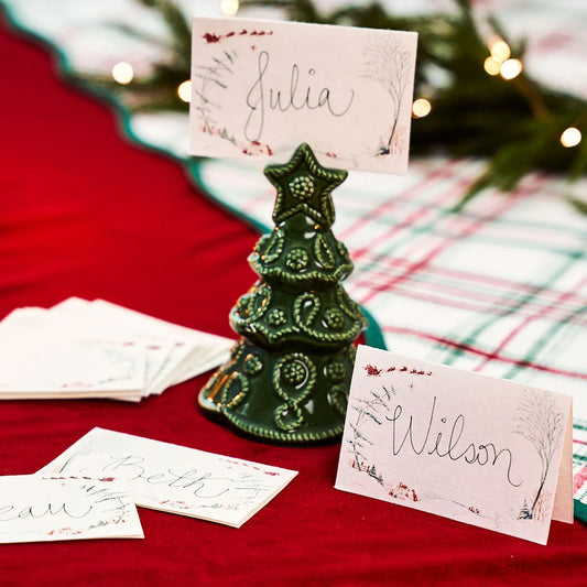 Regular price $12.00Regular priceUnit price perSale price $12.00Honor each and every guest with a beautiful card, marking their special place at the table in style. Featuring a holiday scene from our Country Estate that is traditional, whimsical and elegant. We also love to use these as little note cards for gifts.