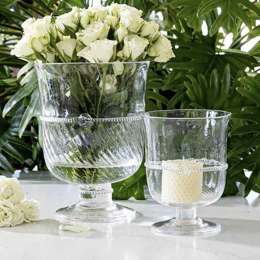 Regular price $175.00Regular priceUnit price perSale price $175.00This eye-catching hurricane imbues exquisite beauty into any space you wish to illuminate with twinkling candlelight. Made of diaphanous Bohemian glass using a groundbreaking technique by our master glass artisans, our Graham collection achieves its shimmering spiral optic pattern and jewelry-like thread trim. This sets an instantly romantic scene for sparkling soirées and also makes a gorgeous vase for fresh flowers. Especially stunning when displayed in pairs or clusters.