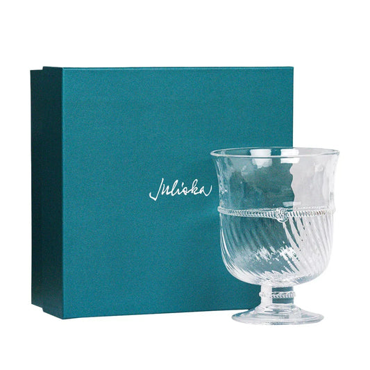 Regular price $225.00Regular priceUnit price perSale price $225.00This eye-catching hurricane imbues exquisite beauty into any space you wish to illuminate with twinkling candlelight. Made of diaphanous Bohemian glass using a groundbreaking technique by our master glass artisans, our Graham collection achieves its shimmering spiral optic pattern and jewelry-like thread trim. This sets an instantly romantic scene for sparkling soirées and also makes a gorgeous vase for fresh flowers. Especially stunning when displayed in pairs or clusters.