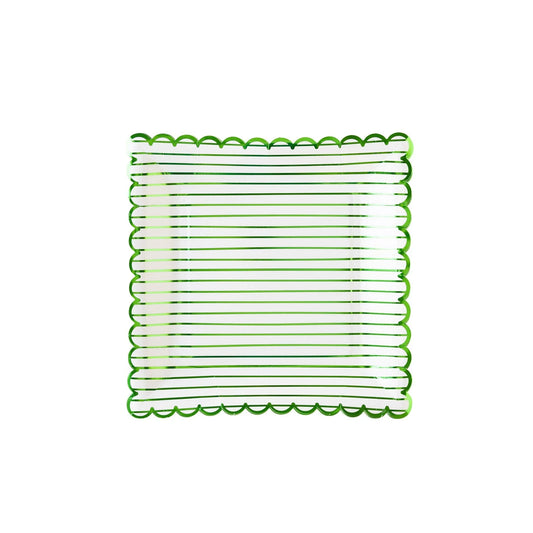 Regular price $7.50Regular priceUnit price perSale price $7.50This St. Patrick's Day, share your lucky charm with our Green Striped Paper Plate. With a green stripe foil, it's sure to bring a little extra luck to your festivities! • includes 8 scalloped paper plates • 9 x 9 inches • green foil accents 3 sets of plates make 1 wholesale pack.