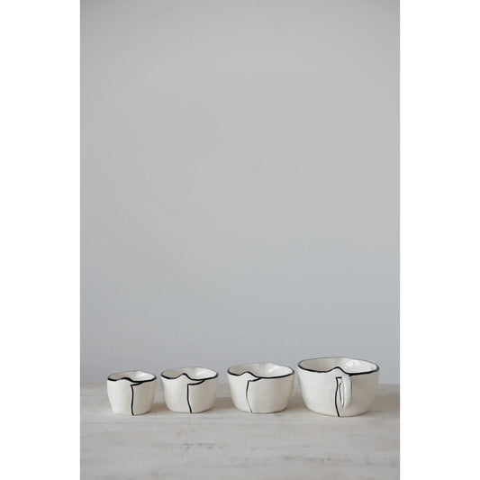 Regular price $19.95Regular priceUnit price perSale price $19.95These measuring cups are both unique and fun. Their white base and black rim makes for a simplistic design fit for any style of kitchen. They are labeled with the measurements on the inside of the cups for easy baking. Comes in a set of 4 with 1, 1/2, 1/3 and 1/4 cups. -