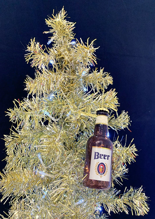 Regular price $15.95Regular priceUnit price perSale price $15.95Christmas Decor. A Holiday Ornament for the beer lover or that special person who likes to crack a cold one after a long day. Our Christmas Ornament is Beer themed and is the perfect novelty gift for any Christmas tree. Perfect for: stocking stuffers, unique Christmas gift, decor accessory for bar, home brewery, great gift for Dad, gift baskets. Glass blown with hand applied glitter and trim. Packed in custom red box. COLORS: Brown Glass, White and Gold Glitter, Blue, Red, Gold. SIZE: 4.5 DIAM cm x 13 H cm -