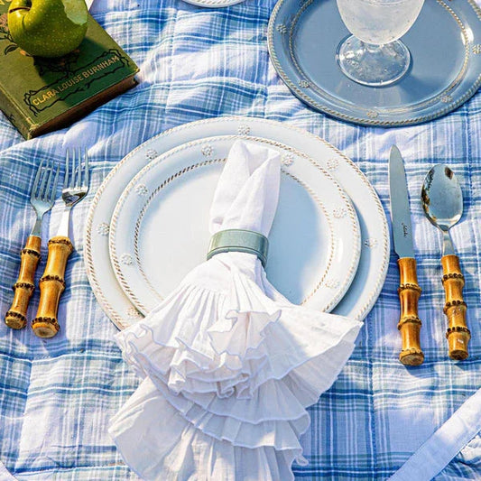 Regular price $26.00Regular priceUnit price perSale price $26.00The bamboo border with caning inset on this dinner plate evokes the natural textures of exotic places for a look that is equally traditional and adventurous. Made of shatterproof melamine, it is ideal for all of your culinary forays into the wild outdoors - from breezy seaside picnics to romantic teas in the garden.