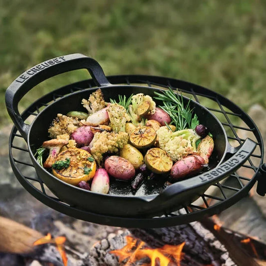 Regular price $160.00Regular priceUnit price perSale price $160.00Go beyond the kitchen with the Alpine Outdoor Skillet – a versatile essential for searing, sautéing, stir-frying and griddling outdoors. Crafted from enameled cast iron and specifically designed for cooking over an open flame, the skillet is completely encased in a rugged matte black enamel that is ready to use and requires no seasoning. It’s perfectly sized to fit on most grills with enough room to grill alongside, and has a generous surface area and angled sides ideal for stirring and flipping. Raised loop handles make it easy to maneuver on the grates, yet with a low-profile design that allows grill hoods to close. Durable and easy to clean, the Alpine Outdoor Skillet is ideal for seared steaks, fried eggs, toasted sandwiches, pancakes and more.
