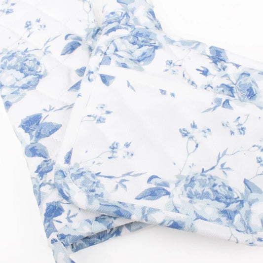 Regular price $21.00Regular priceUnit price perSale price $21.00Bring the feeling of natural beauty and timeless elegance into your kitchen with our Blue Rose Oven Mitt Set. Get ready to feel stylish while cooking with this set and its signature blue rose print design – perfect for adding a flair of sophisticated charm to any kitchen. Crafted from 100% cotton, you know you’re getting nothing but the best in quality and comfort. Plus, each mitt and potholder also come complete with a hanging loop for easy storage when not in use! Make sure to pair this beautiful oven mitt set with our Kitchen Towels and Aprons to create a wonderful gift for someone special or just use them as the perfect way to celebrate yourself! 2 Piece Set, Includes Oven Mitt & Potholder Potholder - 8" x 8" Oven Mitt - 12" x 7.5" 100% Cotton Machine Wash Cold, Gentle Cycle Tumble Dry Low. Do Not Dry Clean Designed in the USA; Imported -