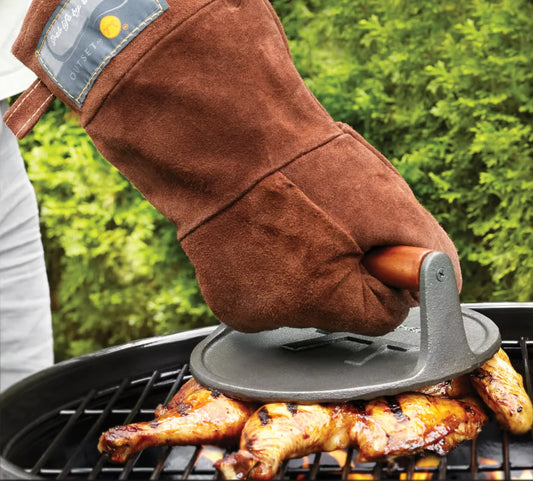 Regular price $28.95Regular priceUnit price perSale price $28.95Great for both the barbeque and the kitchen, your hands and wrists will be protected from the heat with this quality brown leather glove set. These gloves provide enhanced dexterity, making it easier to handle grilling tools while wearing.