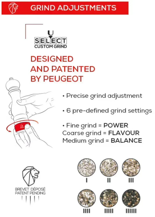 Regular price $68.95Regular priceUnit price perSale price $68.95The curves of the Peugeot Paris u’Select salt mill pair perfectly with the warmth of the wood. The gourmet look is enhanced by a rich and elegant chocolate finish. Created by Peugeot in 1987, the Paris mill is the archetypal grinder, the first choice of the chefs in the world, and a symbol of refined and authentic cooking. This salt mill features the Peugeot u’Select custom grind control system built in the base of the mill to allow users to accurately select their preferred grind size. Six grind presets are available: 1 for the finest grind and 6 for a medium to coarser grind.