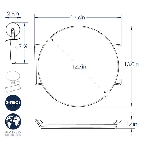 Regular price $22.00Regular priceUnit price perSale price $22.00Pizza night at home? Look no further! The three-piece Nordic Ware Pizza Stone Set provides all the items you need for family pizza night other than the pizza! The attractive ceramic plate keeps your pie warm, the steel rack helps keep the heat directly off the table, and the set comes complete with a wood-handled pizza cutter. The only decision you'll need to make is whether you'll cut triangles or squares.
