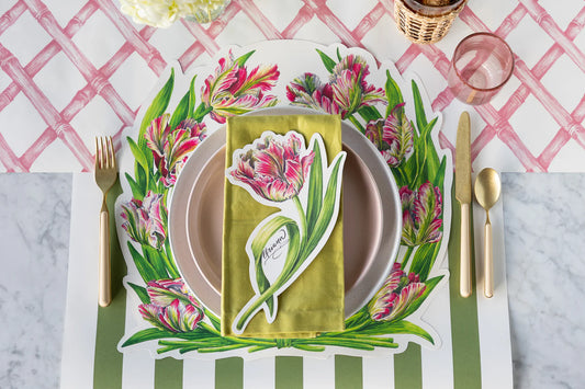 Transform your table into a garden celebration with these stunning die-cut placemats featuring bold parrot tulips in full bloom. The intricate die-cut silhouette creates a dimensional, artistic look that goes beyond ordinary paper placemats, making each place setting a work of art.