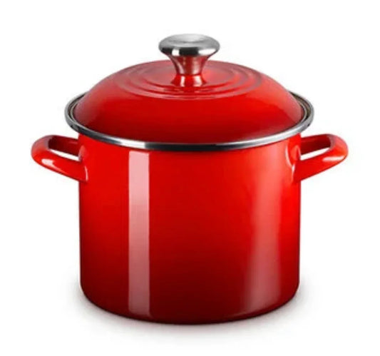 Regular price $190.00Regular priceUnit price perSale price $190.00Tall straight sides and large capacity make enamel on steel Stockpots ideal for soups, stocks, cooking pasta and boiling seafood. Available in a range of convenient sizes, they deliver our fastest-heating performance of premium carbon steel glazed in our beautiful palette of colors. Lightweight and durable, carbon steel rapidly brings water to a boil to speed up prep and cooking and retains heat to keep food and liquids warm. The easy to clean colorful porcelain enamel coating is non-reactive and resistant to stains and flavors, making enamel on steel stockpots ideal for everyday use.