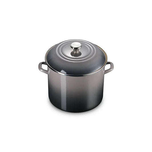The Le Creuset Enameled Cast Iron Stockpot in Oyster is built for big cooking — pasta nights, lobster boils, batch soups, and stock-making that fills the kitchen with incredible aromas. Its enameled cast iron construction delivers the even, consistent heat that prevents scorching and ensures every ingredient cooks perfectly. The sophisticated Oyster glaze — a soft, warm grey-white — is understated and elegant on any stovetop or table.