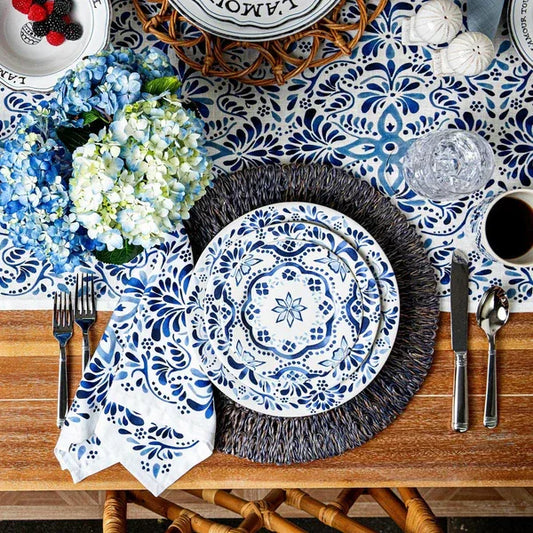 Regular price $98.00Regular priceUnit price perSale price $98.00A journey to the sandy Iberian coast inspired this breezy motif where we've reinterpreted the region's stunning cobalt blue painted tiles onto a crisp white backdrop for endless mixing and matching.