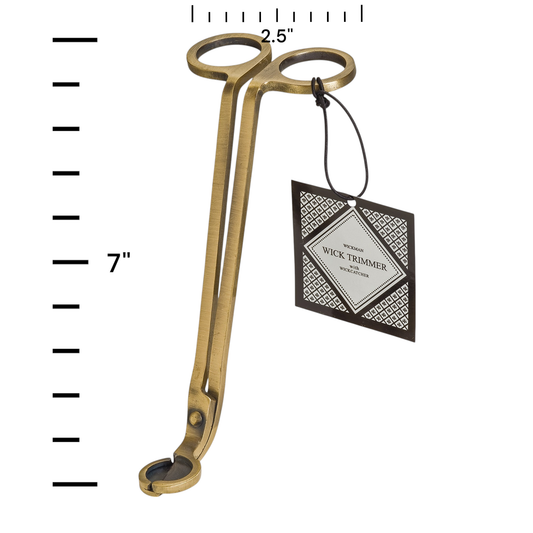 Regular price $11.50Regular priceUnit price perSale price $11.50Wickman antique brass finished wick trimmer. -Hang tag only 7" long x 2.5" wide at handles -Keep wicks properly trimmed for a cleaner, safer, longer candle burn -