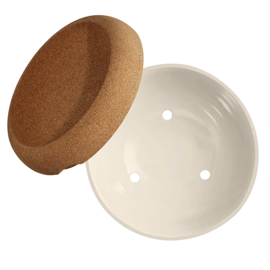 The Emile Henry Large Storage Bowl in truffle combines sophisticated style with intelligent functionality, preserving your prepared foods, leftovers, and ingredients at peak freshness. Crafted in Burgundy, France, this ceramic storage bowl features an airtight cork lid that creates the perfect seal while adding natural warmth to the design.