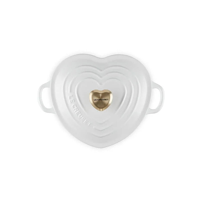 Le Creuset Shallow Heart Cocotte with Light Gold Heart Knob - White
